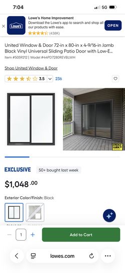 New Patio Door Vinyl Black Outside White Inside Size W71.1/2 H79.1/2 New Construction $575 Each Opening From Right Slide On The Left Inside The Hous$575Chicago, IL