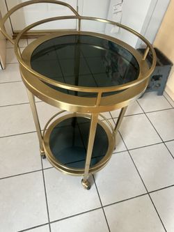 World Market Brass Round Bar Cart – 2-Tier Glass Shelves, Wheels – $85$70Chicago, IL