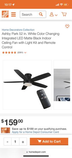 Ashby Park 52 in. White Color Changing Integrated LED Matte Black Indoor Ceiling Fan with Light Kit and Remote Control$100Dallas, TX