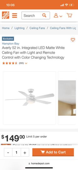 Averly 52 in. Integrated LED Matte White Ceiling Fan with Light and Remote Control with Color Changing Technology$80Dallas, TX
