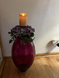 Beautiful Purple Glass Heavy Vase With Lumina, Gold Sparkle, Candle, And Floral Candle Ring$40Palos Hills, IL