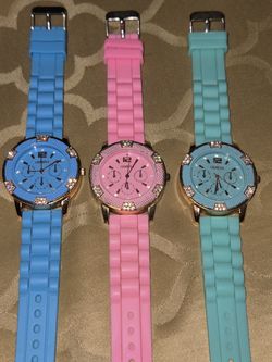 Lot of 3 Geneva Women's Silicone Crystal Quartz Jelly Wrist Watches. Need Batteries.$9Mesa, AZ