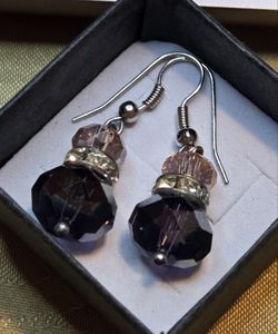 Purple and Pink Glass and White Crystal Bead Dangle Earrings.$5Mesa, AZ