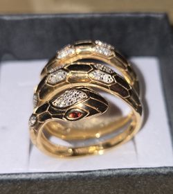 1/10 ctw Genuine Diamond and Garnet wrap Snake ring. 18k YG over .925 Sterling Silver. Size 7.$90Mesa, AZ