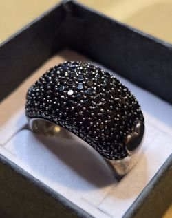 Milor Italy Genuine Black Spinel Pave Dome ring in 950 Sterling Silver. Hearts on sides. Size 7.$35Mesa, AZ