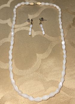 Vintage Art Deco Mother of Pearl Oval Beaded 16" Necklace and Matching Earrings Set. Barrel closure. Set comes with necklace and earrings.$20Mesa, AZ