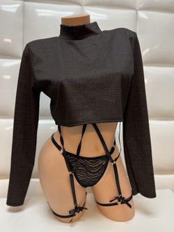 Sexy Brown Plaid Top- USED FOR PHOTOS-$10 no Less-fits Medium-blusa Cafe Usada Solo Para Fotos $10Brea, CA