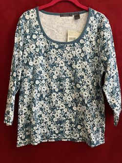 LIZ CLAIBORNE TOP LONG SLEEVE TSHIRT Size XL BLUE FLORAL ** 100+ DESIGNER BLOUSE ON SALE Now $15Las Vegas, NV