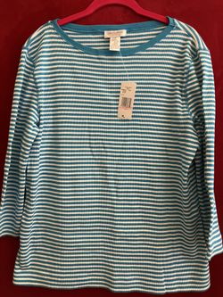 NEW YORK JONES TOP LONG SLEEVE SHIRT Size XL BLUE STRIPE ** 100+ DESIGNER BLOUSE ON SALE Now $15Las Vegas, NV