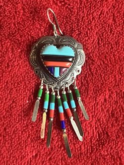 Southwest Style Sterling Silver Heart Dangle Earrings Multi Stone Inlay ‼️ ONLY 1 PIECE - NOT A PAIR ‼️$15Las Vegas, NV
