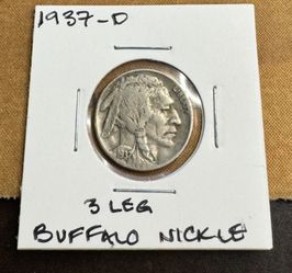 Rare 1937D 3 Legged Buffalo Nickel $630Brentwood, CA