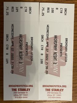 Hairspray Tickets Center Section ,2nd Row$40New Hartford, NY