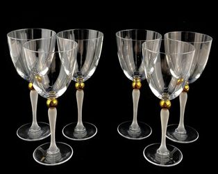 Cristal D'Arques Wine Glasses, Frosted Stem Goblet, Gold Sphere Accent, Vintage (6)$250Philadelphia, PA