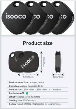 4-Pack ISOOCO Smart GPS Tracker (only Supports iOS, Not Android), Item Finder, Global Locator, Mini Positioning Tag, Suitable for Cars, Bicycles, Suit$10Ontario, CA