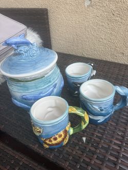 Vintage large Wyland Studios Cookie Jar 1998 dolphin plus 3 mugs$85Alhambra, CA