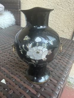 Vintage 60s Black Lacquer Mother of Pearl Vase w/ Brass Handles grandmillinial decor$35Alhambra, CA