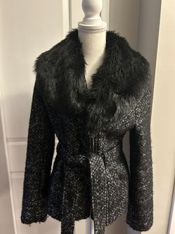 Guess Tweed Jacket With Faux Fur Collar. Zipper And Belted Size Medium$25Stockton, CA
