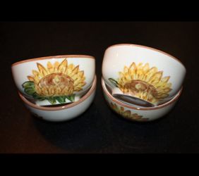 Set of 4 soup / cereal bowls Tabletops Unlimited Gallery Sunflower Collection White yellow green brown Ceramic $15Alta Loma, CA