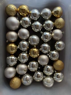 2.5” big 34 Gold & Silver Christmas Ornaments nonbreakable $25Alta Loma, CA
