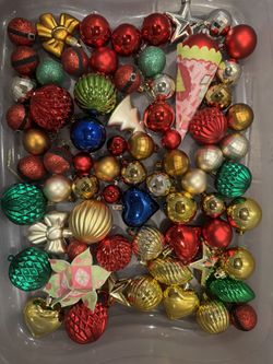 70 Assorted Christmas Ornaments Red Hold Silver Blue Green Up To 2.25” Nonbreakable$20Alta Loma, CA