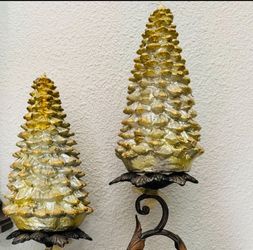 Set Of 2 Metal Candle Holders Ornate Bronze Gold 16” 11” Christmas Tree$25Alta Loma, CA