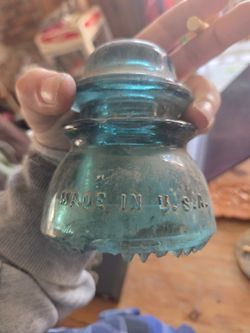 vintage aqua blue glass electrical insulator, specifically a Hemingray-42 model.