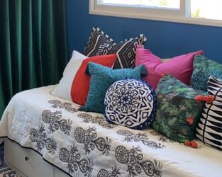 Brand New Target Opalhouse Decorative Throw Pillows Tassel Print Animal Blue White Sofa Staging Bed Boho Velvet Anthropologie West Elm Pottery Barn $95Burbank, CA