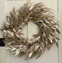 2x Wreaths Autumn Fall Winter Holidays Christmas Wreath Decor Decoration Gold Peacock Feather Leaves Glitter Door Hanging Thanksgiving Large House $27Los Angeles, CA