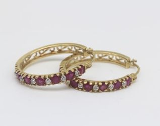 14k solid yellow gold ruby and diamond hoop earrings$500Los Angeles, CA