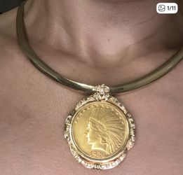 RARE 1926 22k Half Ounce American Eagle Coin Diamond Bezel Omega Necklace$7,000Los Angeles, CA