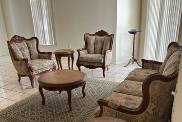 Vintage Elegant French Provincial Carved Mahogany & Italian Tapestry Parlor Living Room Set$1,200Miami, FL