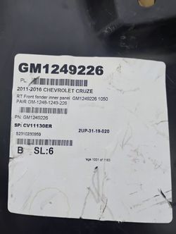 Fender Liner Chevy Cruze $25Stafford, TX