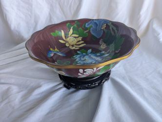 Vintage Chinese Cloisonne Blue Butterfly Chrysanthemum Scalloped 10" Bowl, Base$180Lake Worth, FL