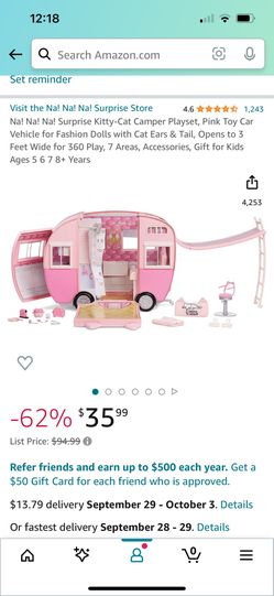 Na! Na! Na! Surprise Kitty-Cat Camper Playset, Pink Toy Car Vehicle for Fashion Dolls with Cat Ears & Tail, Opens to 3 Feet Wide for 360 Play, 7 Areas$20Redmond, WA