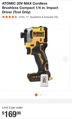 Dewalt Combo. High Impact Drill Plus 5ah Powerstack Battery Kit$280Baldwin Hills, CA