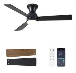 Ceiling Fans with Lights, 48 inch Low Profile Ceiling Fan with Light and Remote Control, Flush Mount, Reversible, 3CCT, Dimmable LED, Noiseless, Black$45Torrance, CA