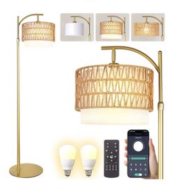 Bohemian Rattan Floor Lamp for Living Room - Golden Arc Design, 12W LED (1 in use + 1 Spare), Remote & Dimmable 3 - Color Temp, Tall Standing Lamp$35Torrance, CA