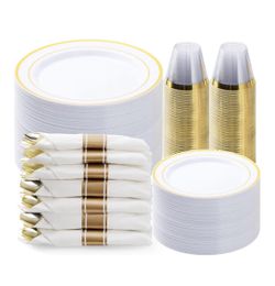 350PCS Gold Plastic Dinnerware Set, Disposable Party Plates for 50 Guests, Include: 100 Plastic Plates, 50 Pre Rolled Napkins with Gold Silverware, 50$40Torrance, CA