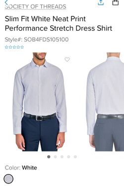 SOCIETY OF THREADS SLIM FIT WHITE NEAT PRINT PERFORMANCE STRETCH DRESS SHIRT