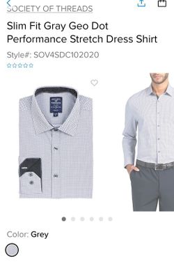 SOCIETY OF THREADS SLIM FIT GRAY GEO DOT PERFORMANCE STRETCH DRESS SHIRT