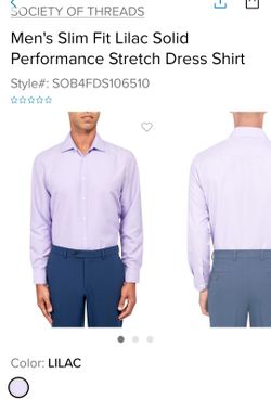 SOCIETY OF THREADS MEN'S SLIM FIT LILAC SOLID PERFORMANCE STRETCH DRESS SHIRT