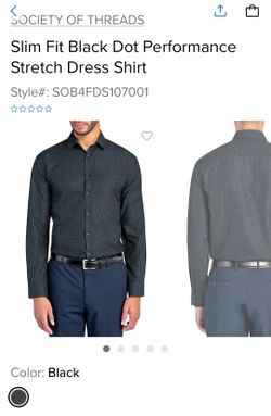 SOCIETY OF THREADS SLIM FIT BLACK DOT PERFORMANCE STRETCH DRESS SHIRT
