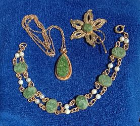 1/20 12 K GF ,Jade,Faux Pearls Bracelet,Brooch & Necklace $75Colorado Springs, CO