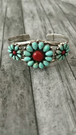 Beautiful Turquoise & Coral Flower Cuff 925 Bracelet$130Fair Oaks, CA