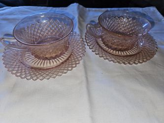 2 Pink Miss America Depression Glass Cups Saucers$10Roscoe, IL