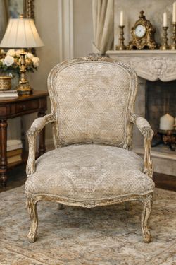 Vintage French Louis XV Style Bergere Armchair Distressed Wood Upholstered Accent Chair$199Irvine, CA