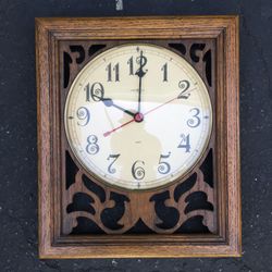 Antique Wood Wall Clock Vintage Decor Woodwork Art Timepiece Battery powered $50Pomona, CA