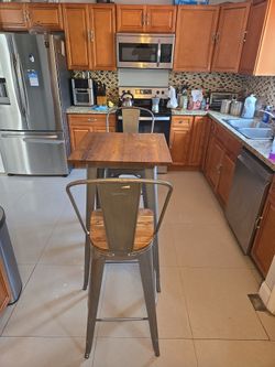 beautiful square metal bartable set with wood top and 2 stools$125Miramar, FL