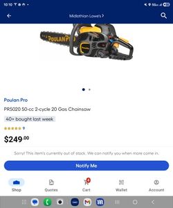 NIB Poulan Pro PR5020 50-cc 2-cycle 20in Gas Chainsaw$180Red Oak, TX