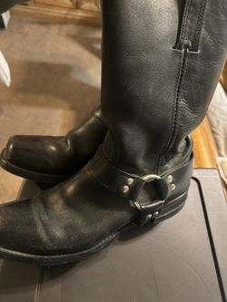 Vintage FRYE Black Leather Harness Western Work Biker Boots Pull On Men's Size 10.5$150Las Vegas, NV